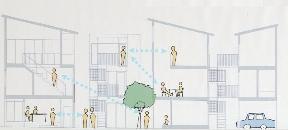 10 このように敷地区分ははっきりしつつも、個々人の選択ではあるが使い方を共有していくことで、スッと行き来できる近隣関係ができる。また、各個人の主体的な行為をうながし、多様なつながりも生まれるのではないだろうか。 |